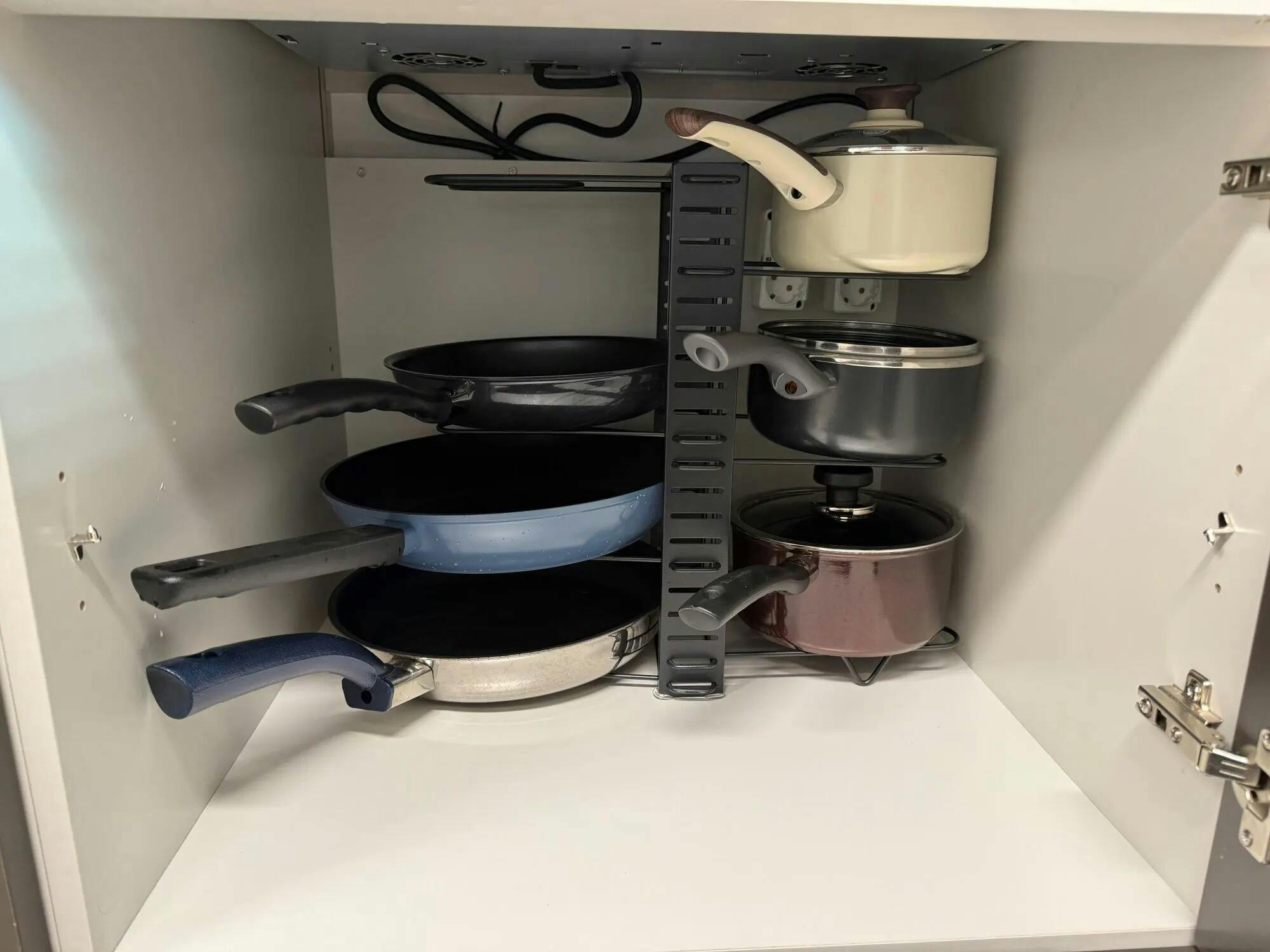 Say goodbye to chaotic cabinets and stacked pans!
